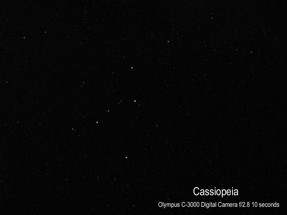 Chris Newsome took the following picture of Cassiopeia on the 17th July 2004 from the Society's Flamsteed Observatory. He used a Minolta digital camera. Image Credit: Chris Newsome. |