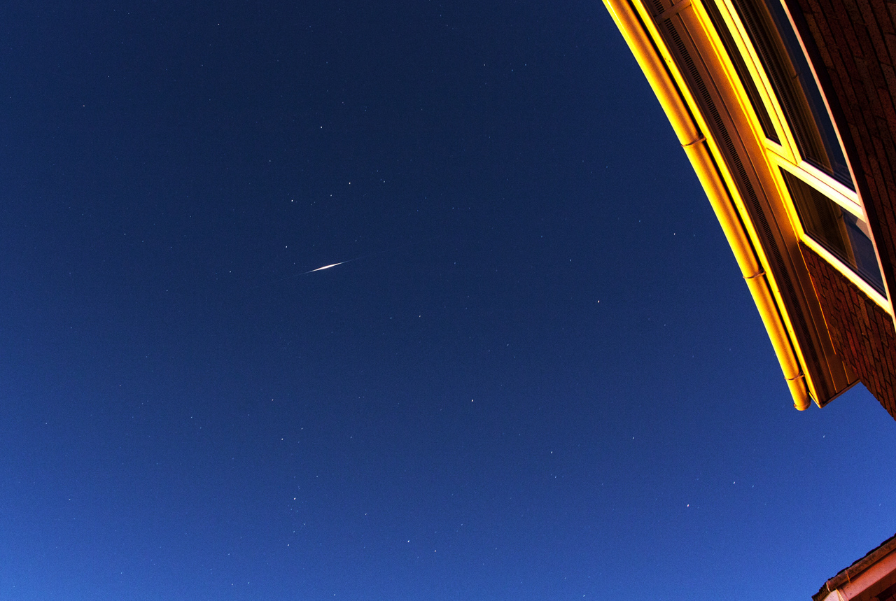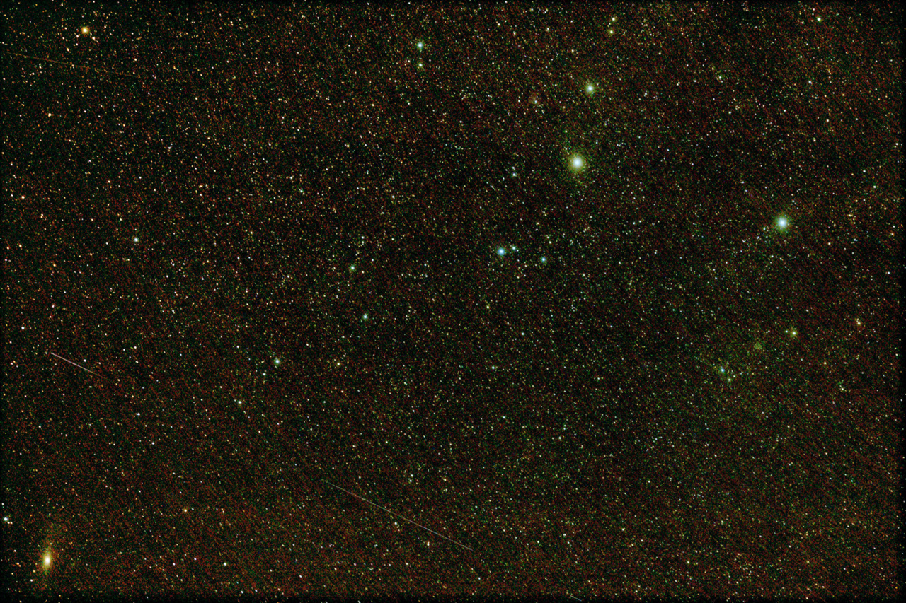 An Iridium 53 flare and Cassiopeia imaged by Chris Newsome on the 16th November 2005. Image Credit: Chris Newsome. |