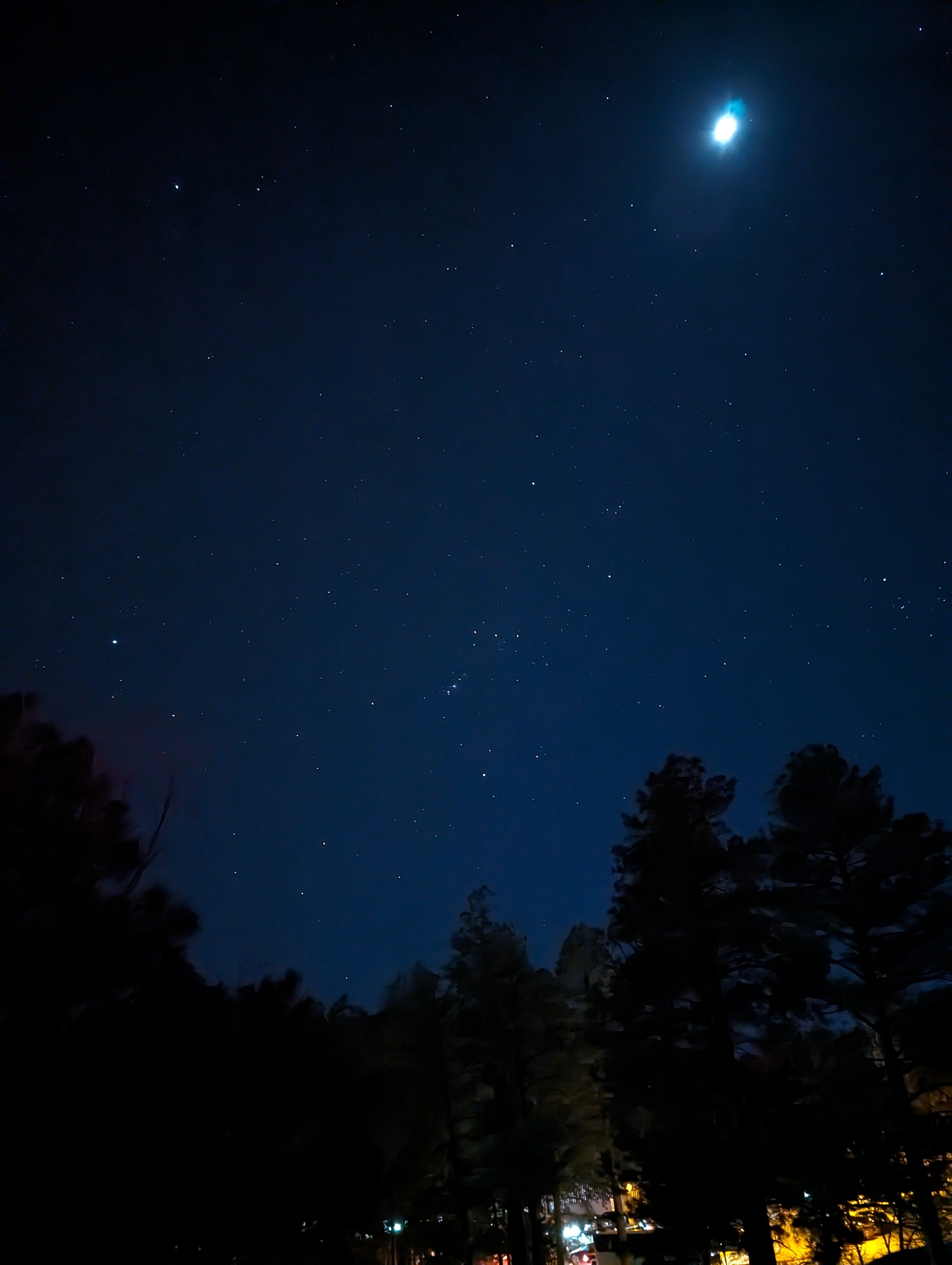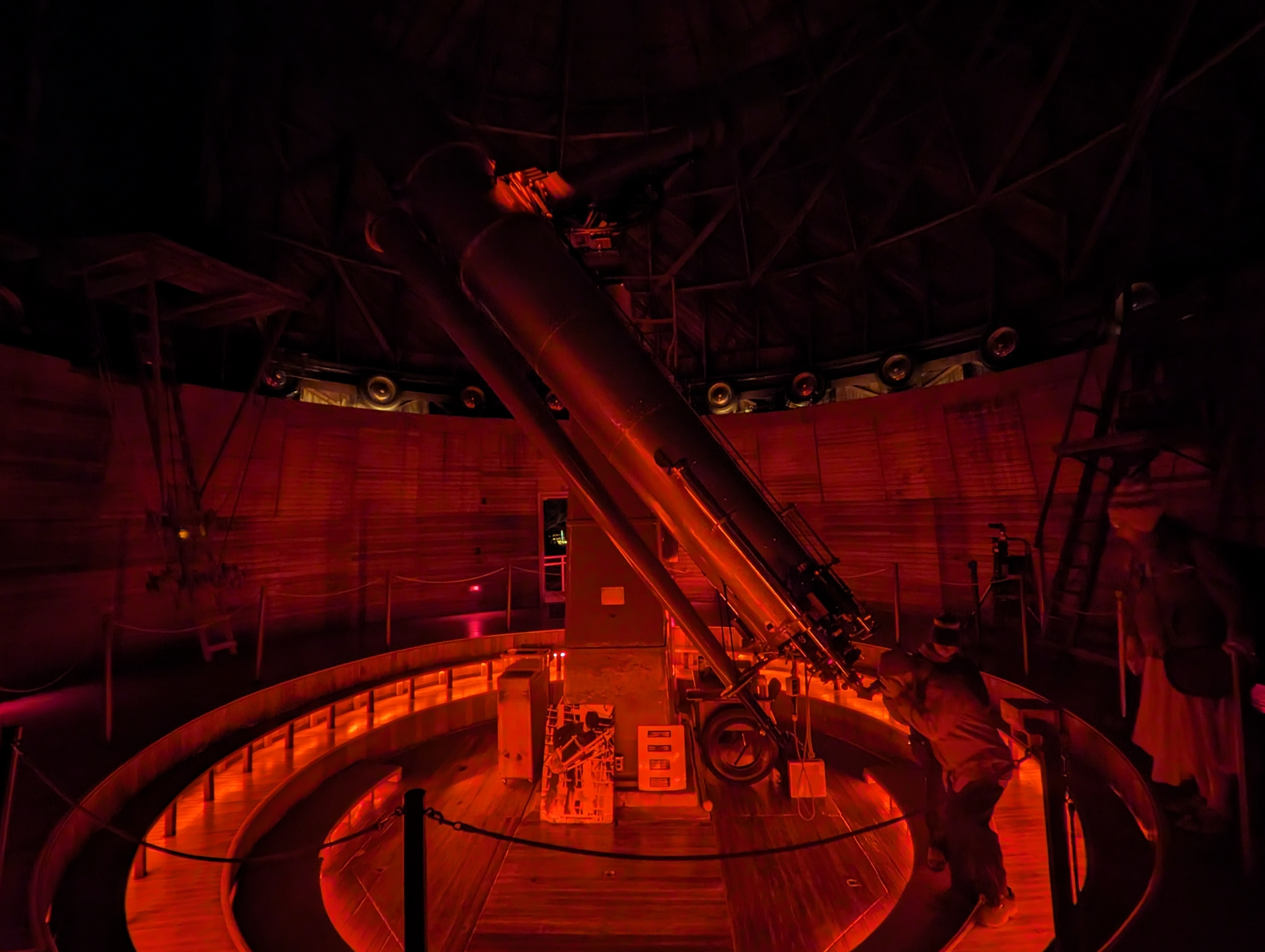 On the evening of Saturday, 13th April 2024, I visited the Lowell Observatory on Mars Hill, in Flagstaff, Arizona. This was one of several sites of astronomical importance that I visited while on the Astro Trails Southwest USA Tour, following the total eclipse I witnessed in Texas on the 8th April. The observatory was founded in 1894 by wealthy Bostonian Percival Lowell, who would later go on to claim he could see a network of canals on Mars (which turned out to be nothing more than an optical illusion). In 1930 the dwarf planet Pluto was discovered at the observatory by Clyde Tombaugh. On my visit, in the company of other tour group members, and despite a bright waning crescent Moon, the skies were otherwise dark and very, very clear. Indeed, our guide from the observatory told us that they had 360 clear nights a year. I told them we had the other 5! We were not given a tour of the observatory per se (I did have a private tour of the facility in January 1995), but rather given a chance to simply look up and enjoy the beautiful skies above our head, many just using the naked eye, some with binoculars, and many, like myself, taking photos with smart phones and DSLRs. We did get a chance to look through the eyepiece of the impressive Brian Dyer Telescope - a 24-inch PlaneWave Corrected Dall-Kirkham instrument, viewing some favourite Messier objects. I also managed a peek inside the dome of the historic 24-inch Clark Refractor that was used by Percival Lowell. Unfortunately, I missed the chance to look through that hallowed telescope as the relentless tour schedule meant we had to get back on the coach for the hotel! Here are some of the pictures I took on the evening, all taken using my new Google Pixel 8 Pro phone, putting the night photography capabilities of it to good use. Quite frankly I was amazed at the results!