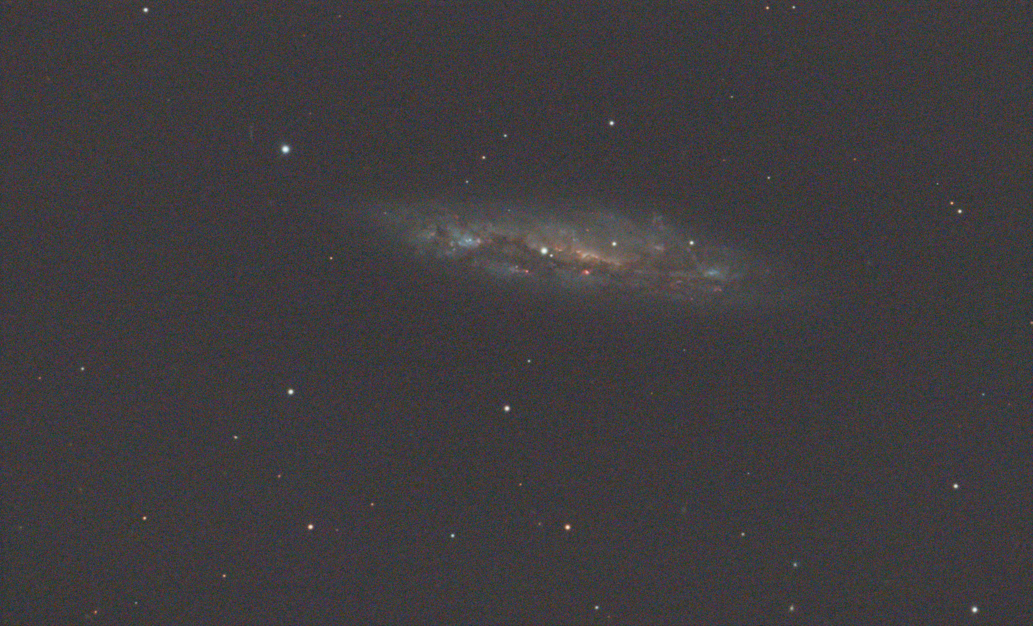 This image of the M108 was captured by Peter Branson on March 15th 2025 and produced from 49 x 60 second images taken with a new ZWO ASI585MC colour camera attached to a Celestron C9.25 Schmitt-Cassegrain telescope, mounted on a SkyWatcher NEQ6 mount. The set of images was stacked in Nebulosity and imported into PixInsight for further processing and sharpening. Peter says: "I bought a new colour camera at the Practical Astronomy Show at 11.00am and by 11.00pm I produced the first results - a brilliant camera!" Image Credit: Peter Branson.