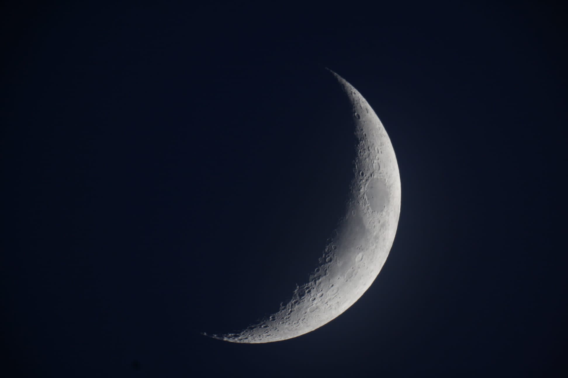 | Jim Sarsgard took this picture of the 4 day 9 hour old moon on the evening of the 10th June 2024. He used a Canon 1000D camera attached to a 102mm Sky Watcher Maksutov. The exposure was 1/15 second at ISO400 and f/11. Image Credit: Jim Sarsgard. |