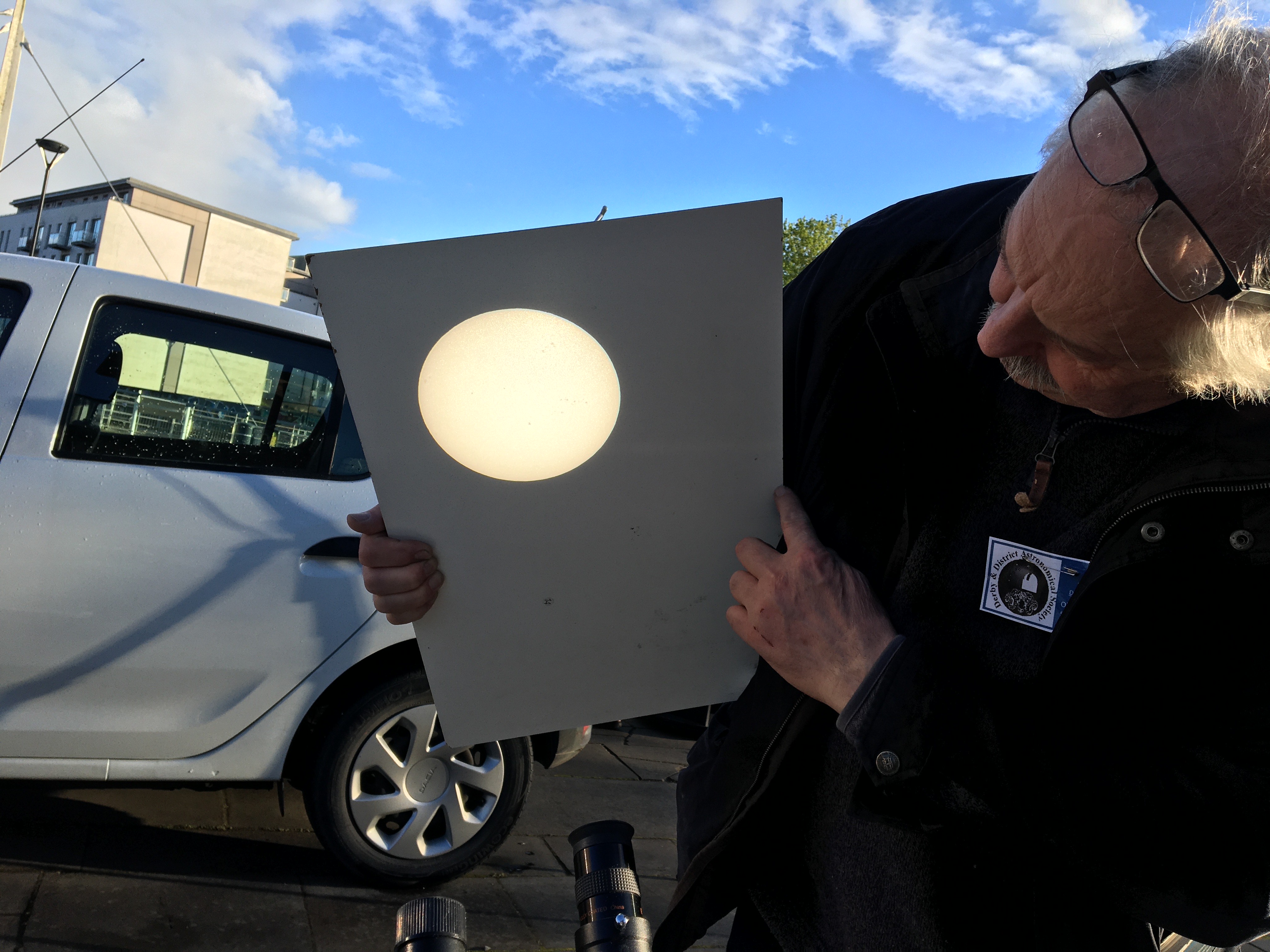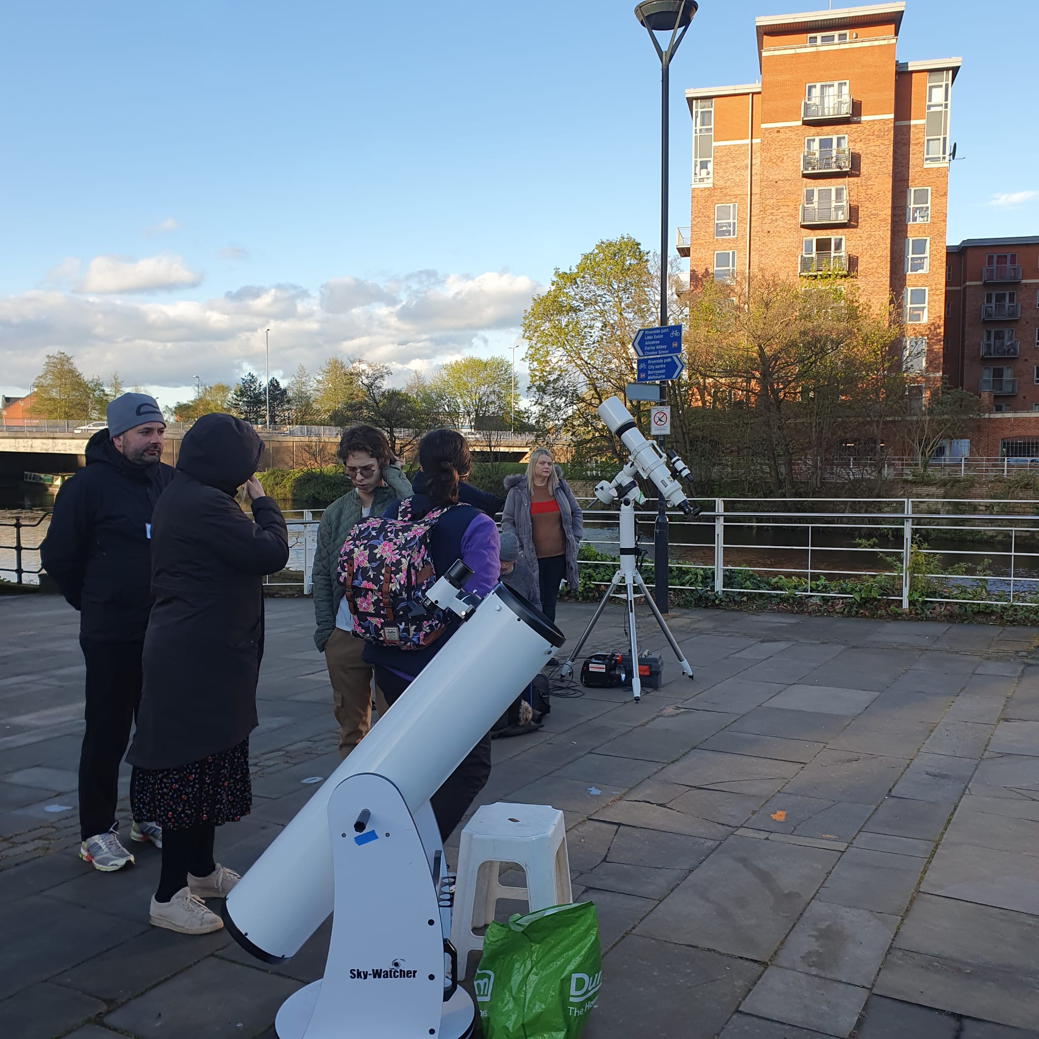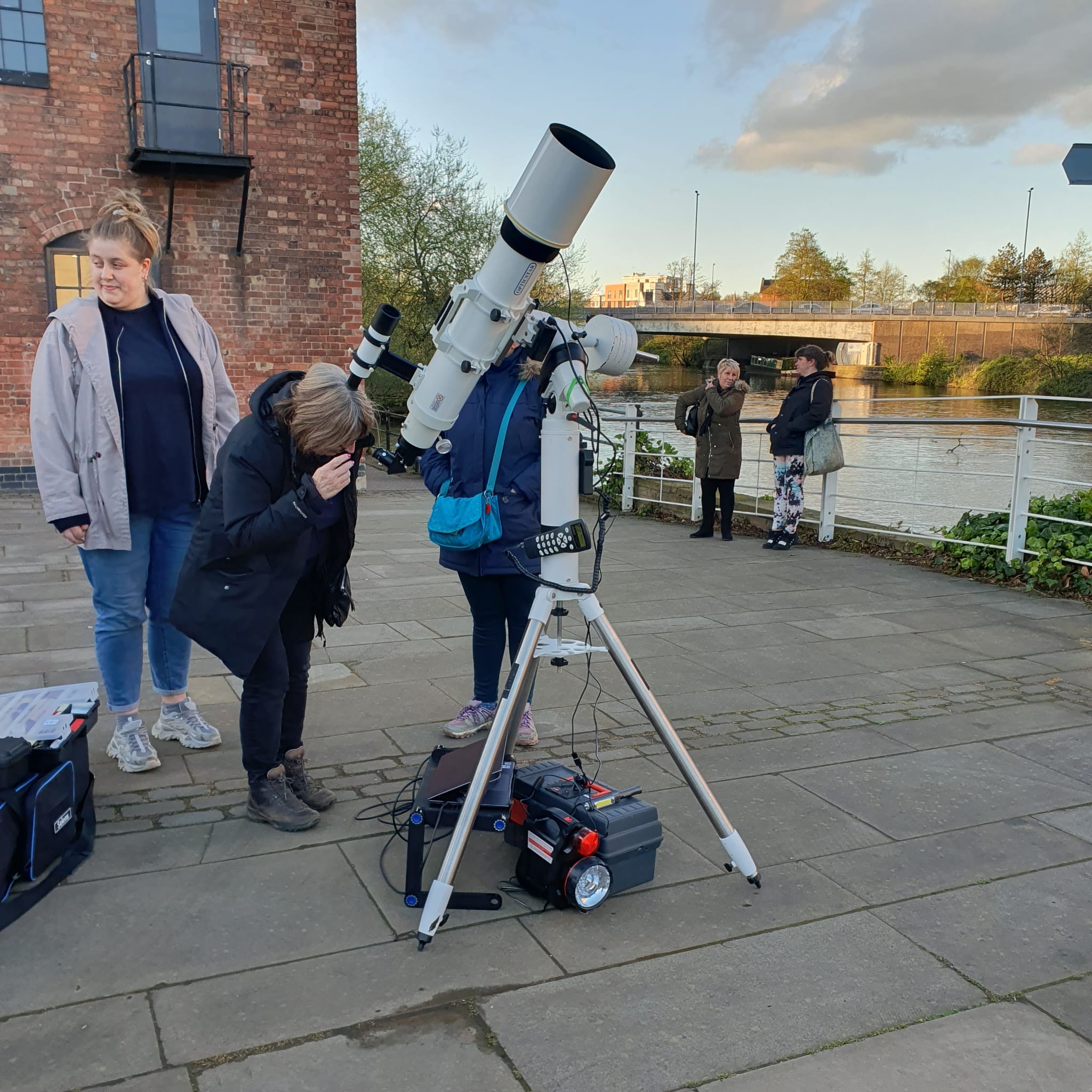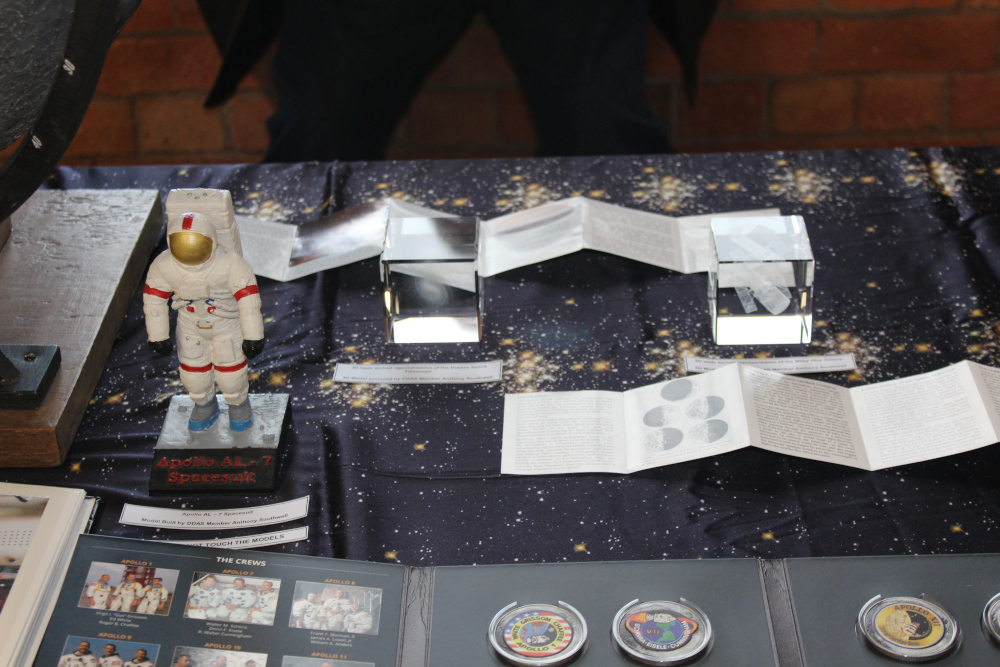 On Wednesday 17th April 2024, DDAS members, in collaboration with Derby Museums and Derby Live, put on an evening of stargazing on Cathedral Green. A number of member's telescopes were set up outside, and people got to view the sun by solar projection and also take a look at the Moon. Meanwhile we had an exhibition inside the Museum of Making, where people could chat to DDAS members about astronomy and space, view the Society's moon globe (which is signed by some of the Apollo astronauts), see our meteorite collection, several models of spacecraft, and view some static telescopes and other items of interest. We also provided a presentation on astronomy to a local Beaver's group. See our follow on event on the 9th October 2024 here. |