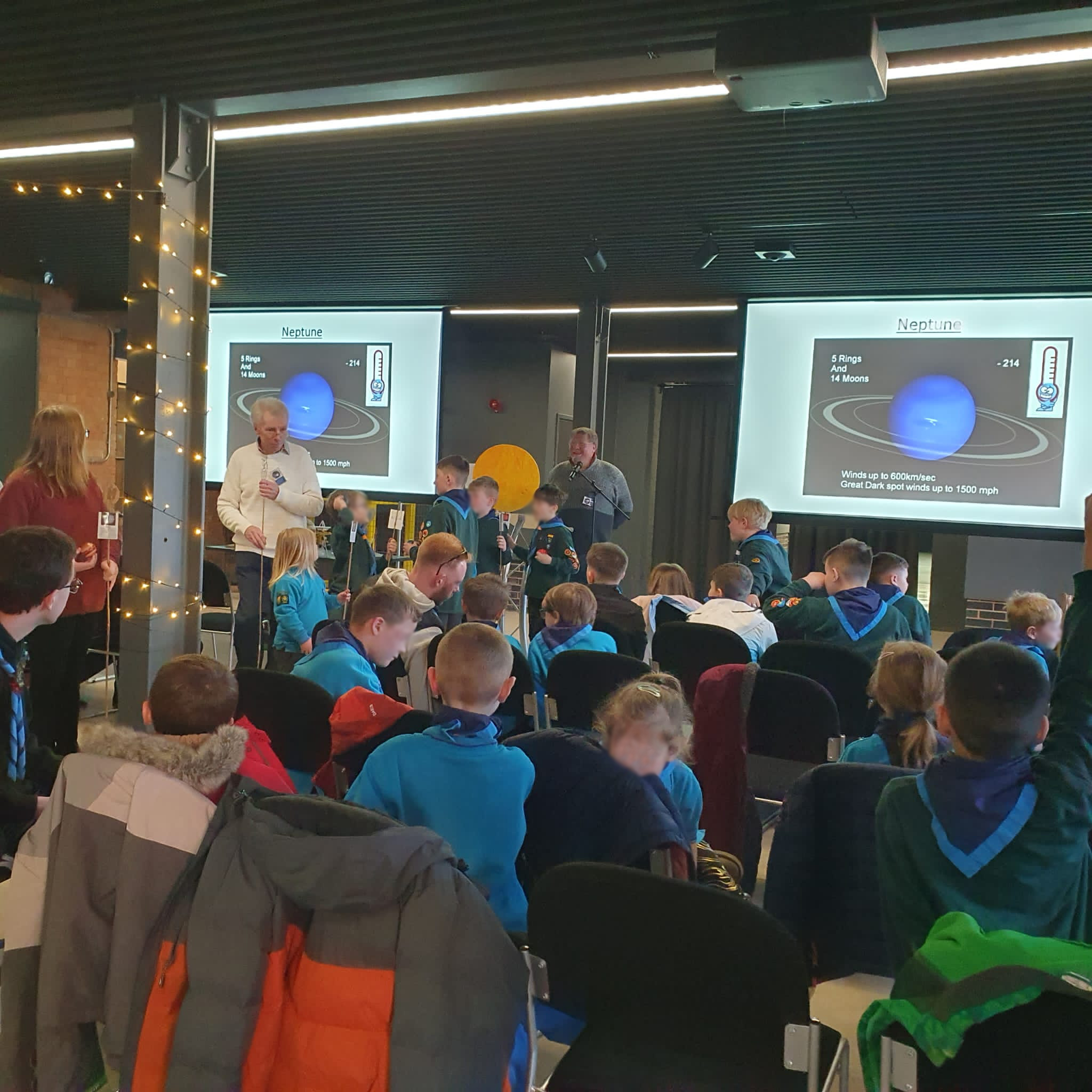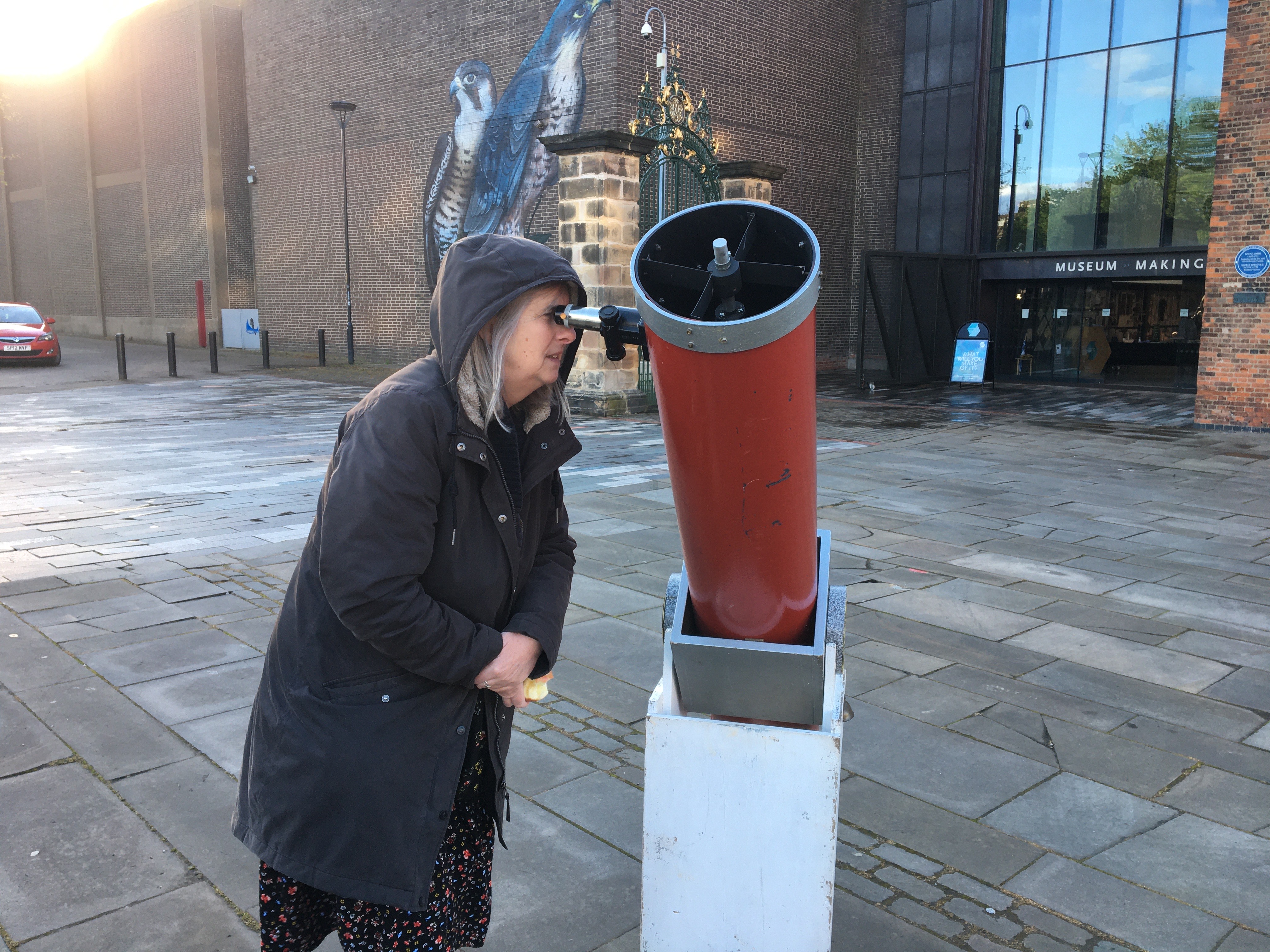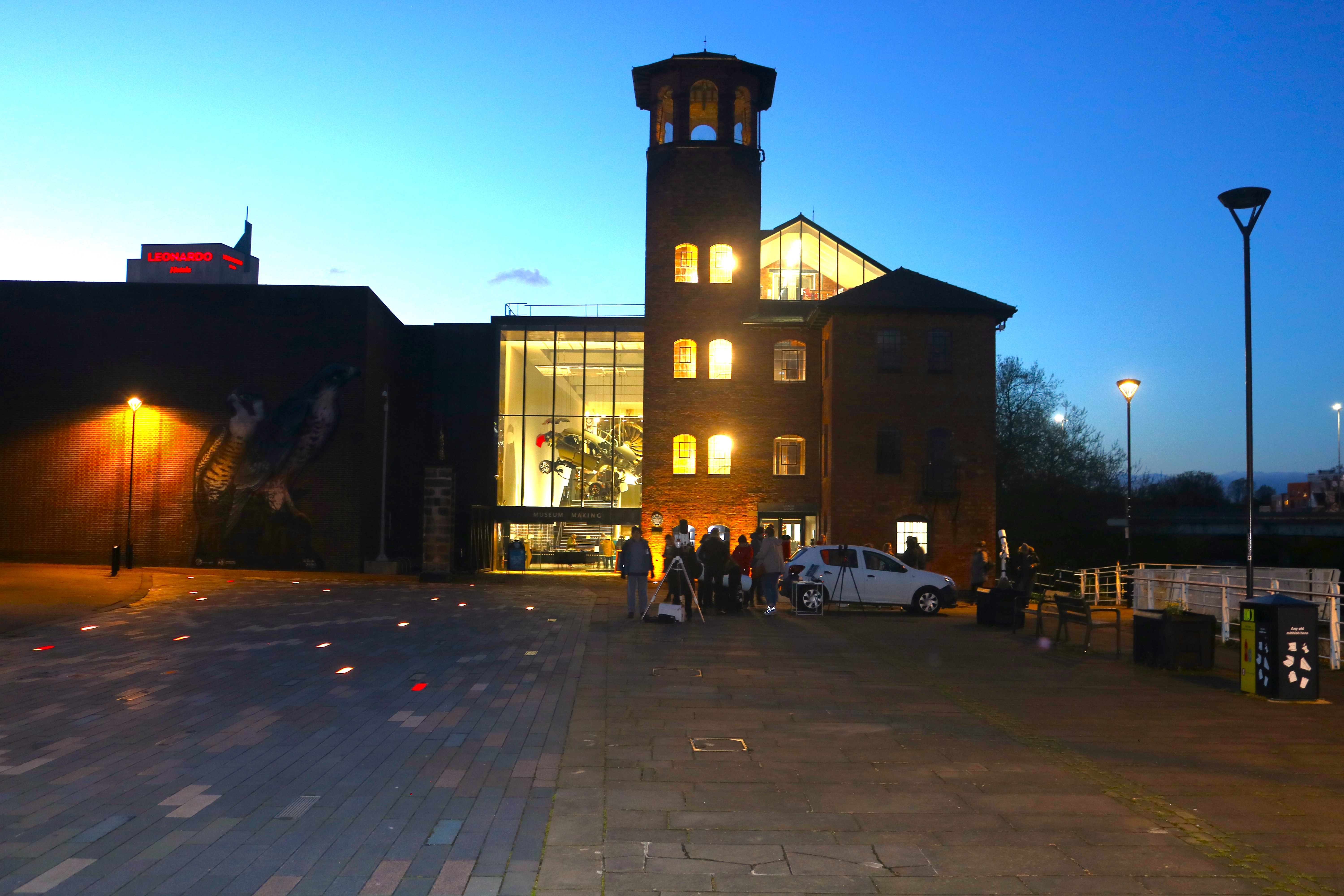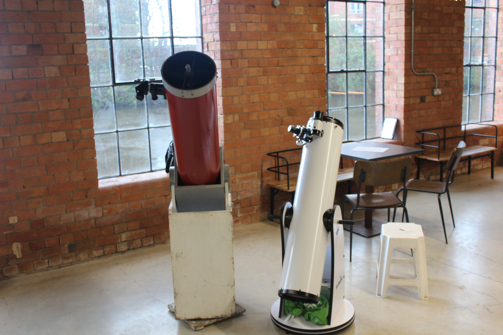 On Wednesday 17th April 2024, DDAS members, in collaboration with Derby Museums and Derby Live, put on an evening of stargazing on Cathedral Green. A number of member's telescopes were set up outside, and people got to view the sun by solar projection and also take a look at the Moon. Meanwhile we had an exhibition inside the Museum of Making, where people could chat to DDAS members about astronomy and space, view the Society's moon globe (which is signed by some of the Apollo astronauts), see our meteorite collection, several models of spacecraft, and view some static telescopes and other items of interest. We also provided a presentation on astronomy to a local Beaver's group. See our follow on event on the 9th October 2024 here. |