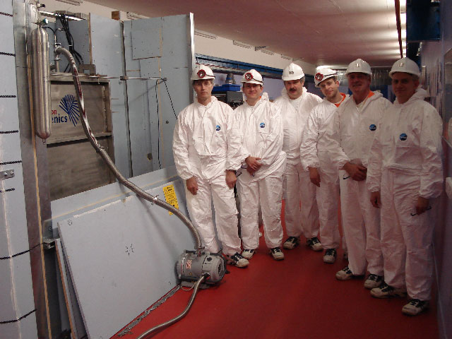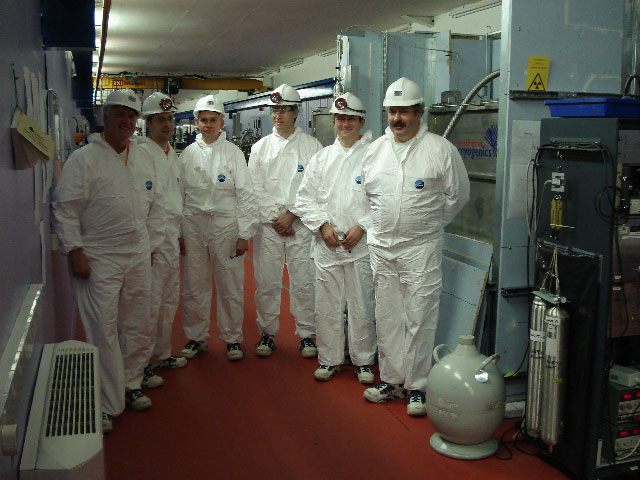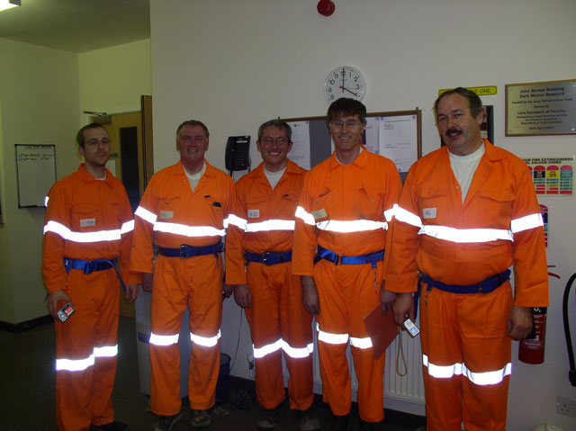 So on the 15th November 2006 a group of six of us including myself, Arthur Tristram, Mike Dumelow, Graham Ensor, Neil Clifford and Adrian Brown travelled up to North Yorkshire for what was to be a trip down the deepest mine in the UK. We were met by Dr Sean Paling of the Institute for Underground Science (IUS), Department of Physics and Astronomy, University of Sheffield, who was to be our guide for the day. He showed us into the John Barton Building – the purpose built surface facility for dark matter research at the mine site. As well as offices this building contains laboratories, computing facilities, a kitchen, conference room, shower and changing rooms. The dark matter facilities at Boulby are part of the IUS, which in turn is a member of the UK Dark Matter Collaboration (UKDMC), which also includes the CCLRC - Rutherford Appleton Laboratory (RAL), The University of Edinburgh, and Imperial College London. Funding for the dark matter facilities at Boulby is largely provided by central government in the form of a Joint Infrastructure Facility (JIF) grant.