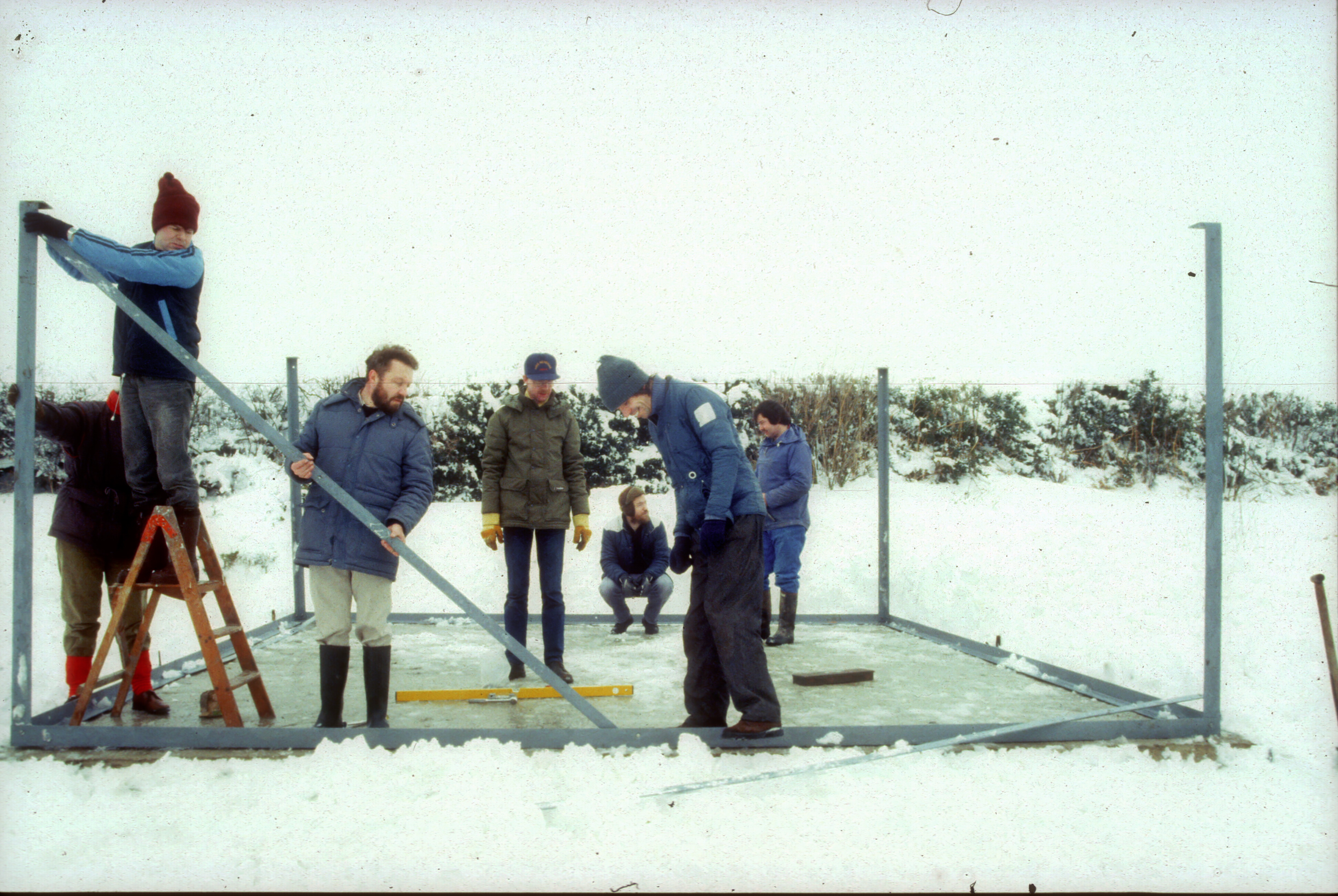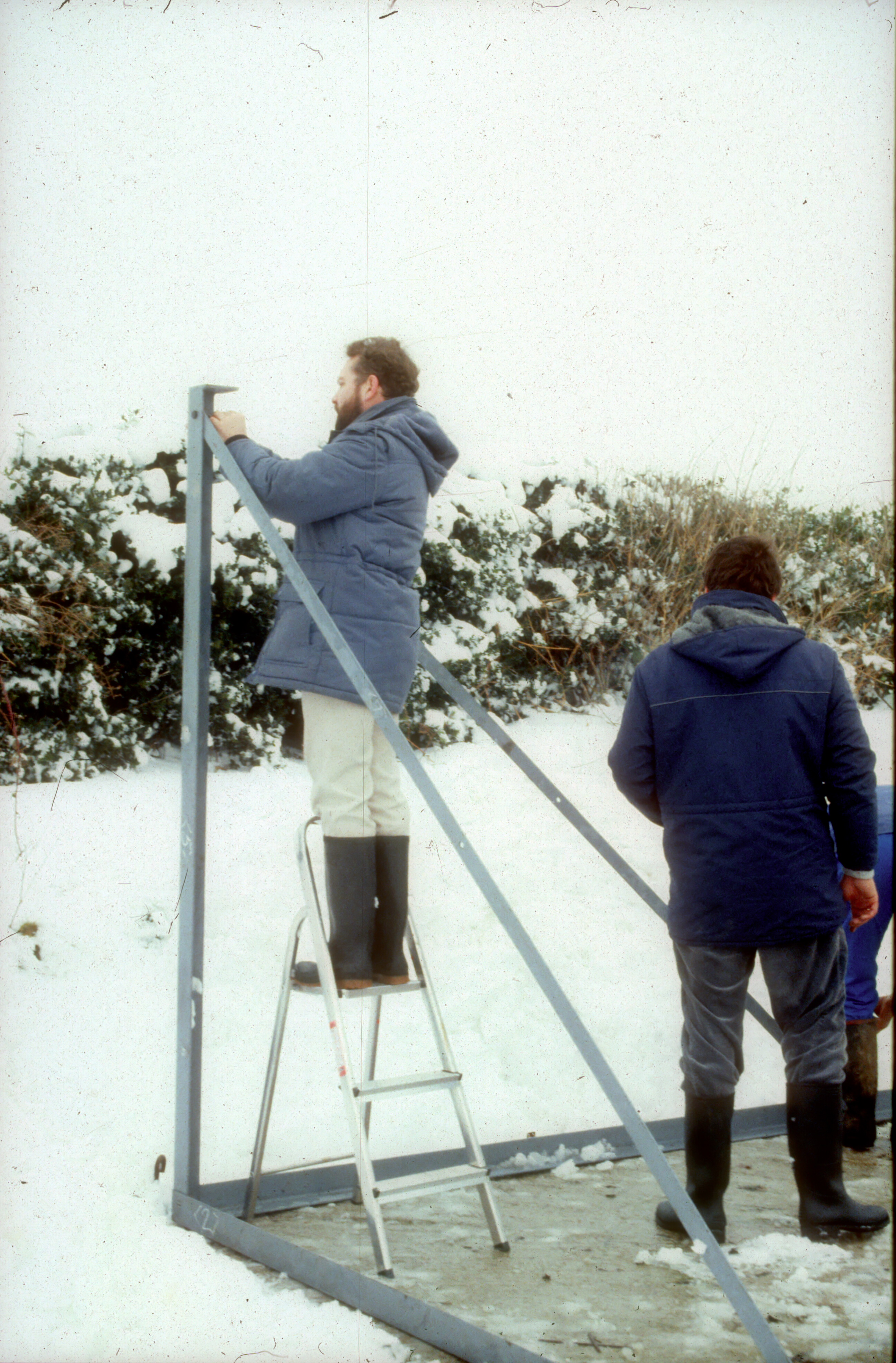 On a snowy day on the 8th March 1987 the main frame of the Society's Flamsteed Observatory was transported to the site and erected. Eight members put the 5m x 5m structure together in 4 hours and another significant part of the site was complete. Photos by Neil Breakwell. More on the history of the Flamsteed Observatory may be found here... |