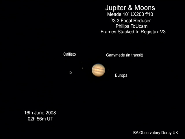 | Barry Ashforth captured the following three images of Jupiter and its moons in June 2008. Image Credit: Barry Ashforth. |