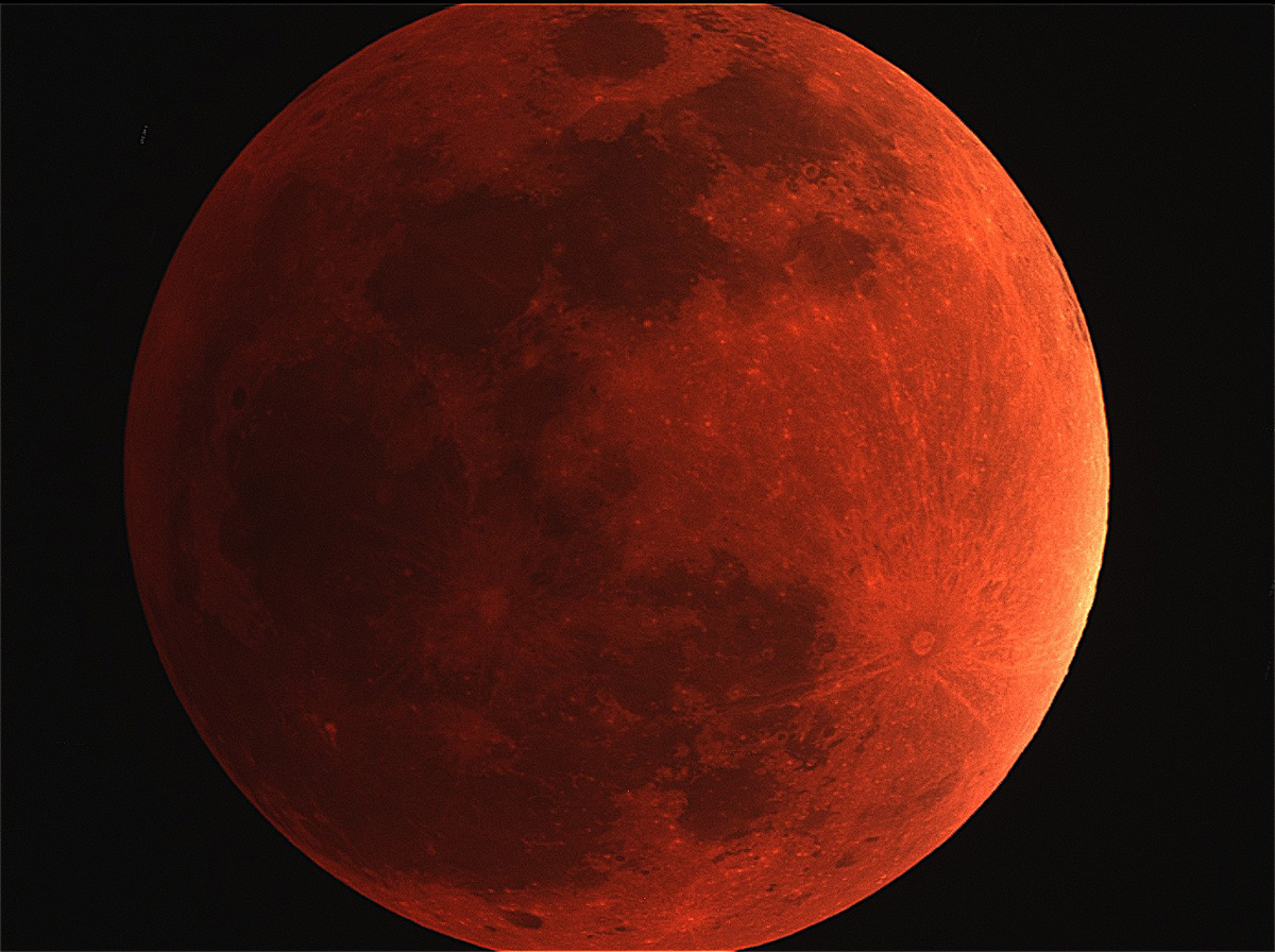 Chris Newsome took this image of the total lunar eclipse of the 28th September 2015 using a Canon 40D DSLR piggy backed on a Skywatcher 102D telescope on an AS-GT mount. The image is a single frame at 400 ASA using a 300 mm lens. Image Credit: Chris Newsome.