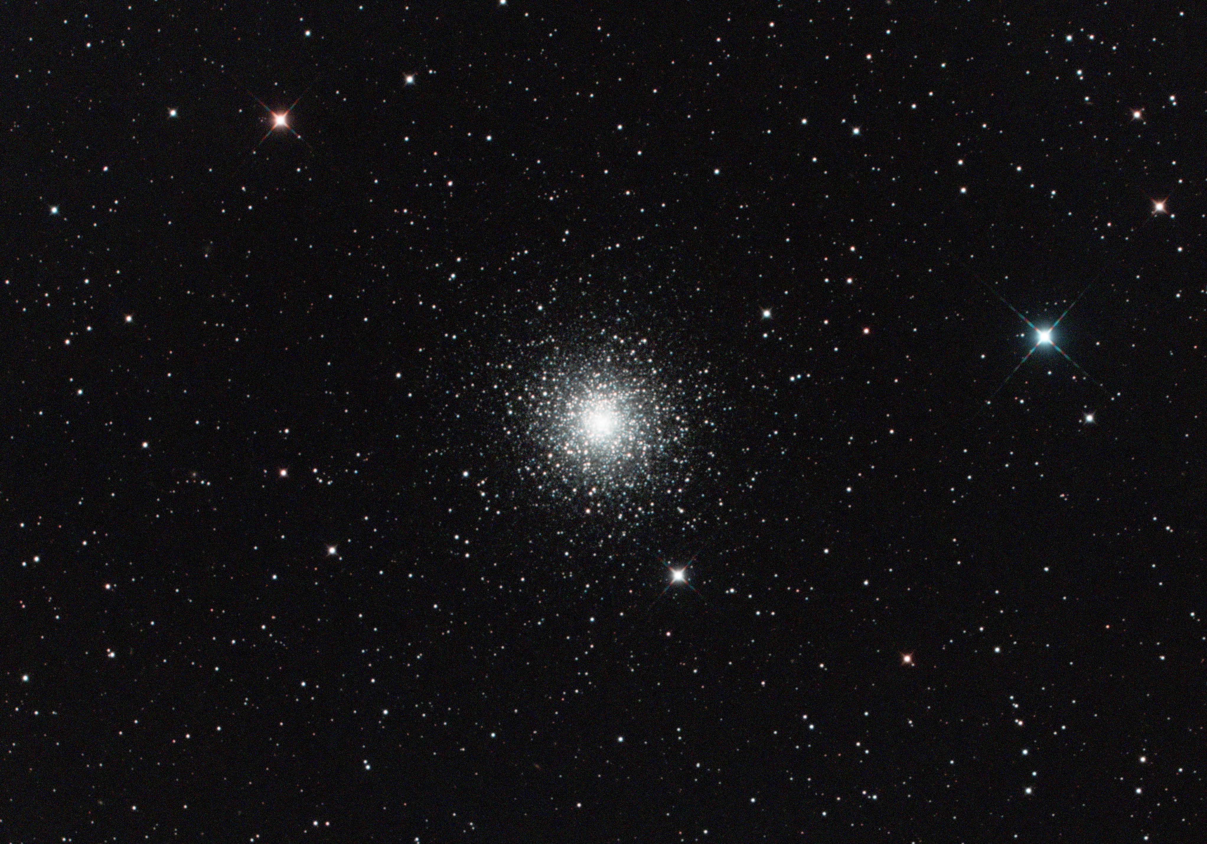 Mike Lancaster captured this image of M15 the 10th November 2023. The image comprises 101 x 10 second exposures taken using an Altair Hypercam 26C camera at 300 gain (plus darks, flats and flat darks), through an Orion Optics UK AG12 Astrograph mounted on an EQ8 mount. A 0.95x Wynne Corrector and Astronomik CLS-CCD filter were also employed. No guiding was required for these short exposures. Images were acquired using SharpCap, and the processing was entirely performed in PixInsight. Image Credit: Mike Lancaster. |
