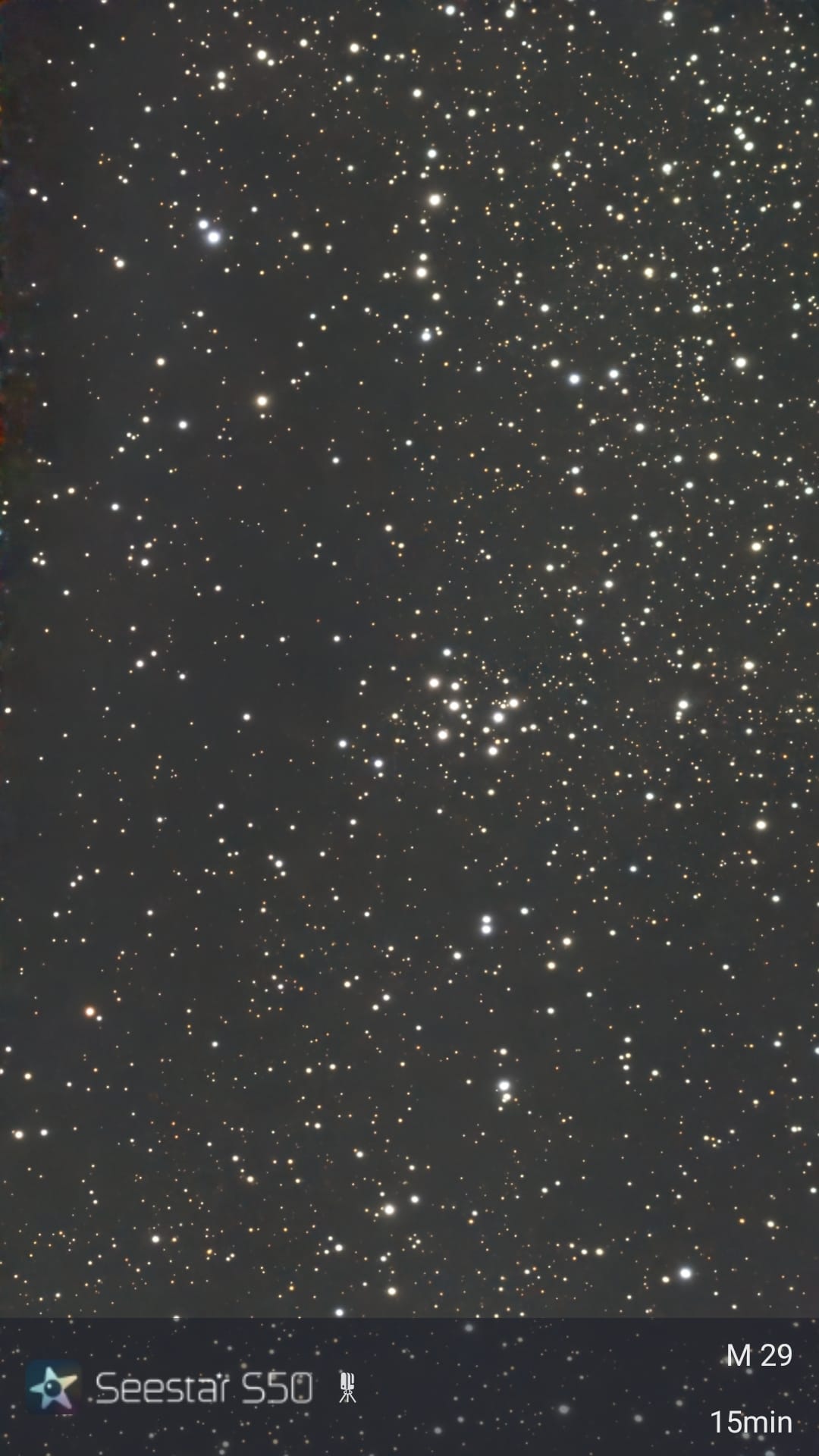 The following image of M29 was captured by Adrian Bancroft on the 8th September 2025 using a Seestar S50 smart telescope. Image Credit: Adrian Bancroft. |