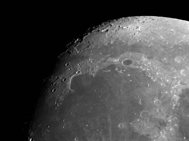 The following image by Chris Newsome taken on the 22nd March 2005 shows the bright crater Aristarchus with the sinuous Schroter's Valley close by. Image Credit: Chris Newsome. |
