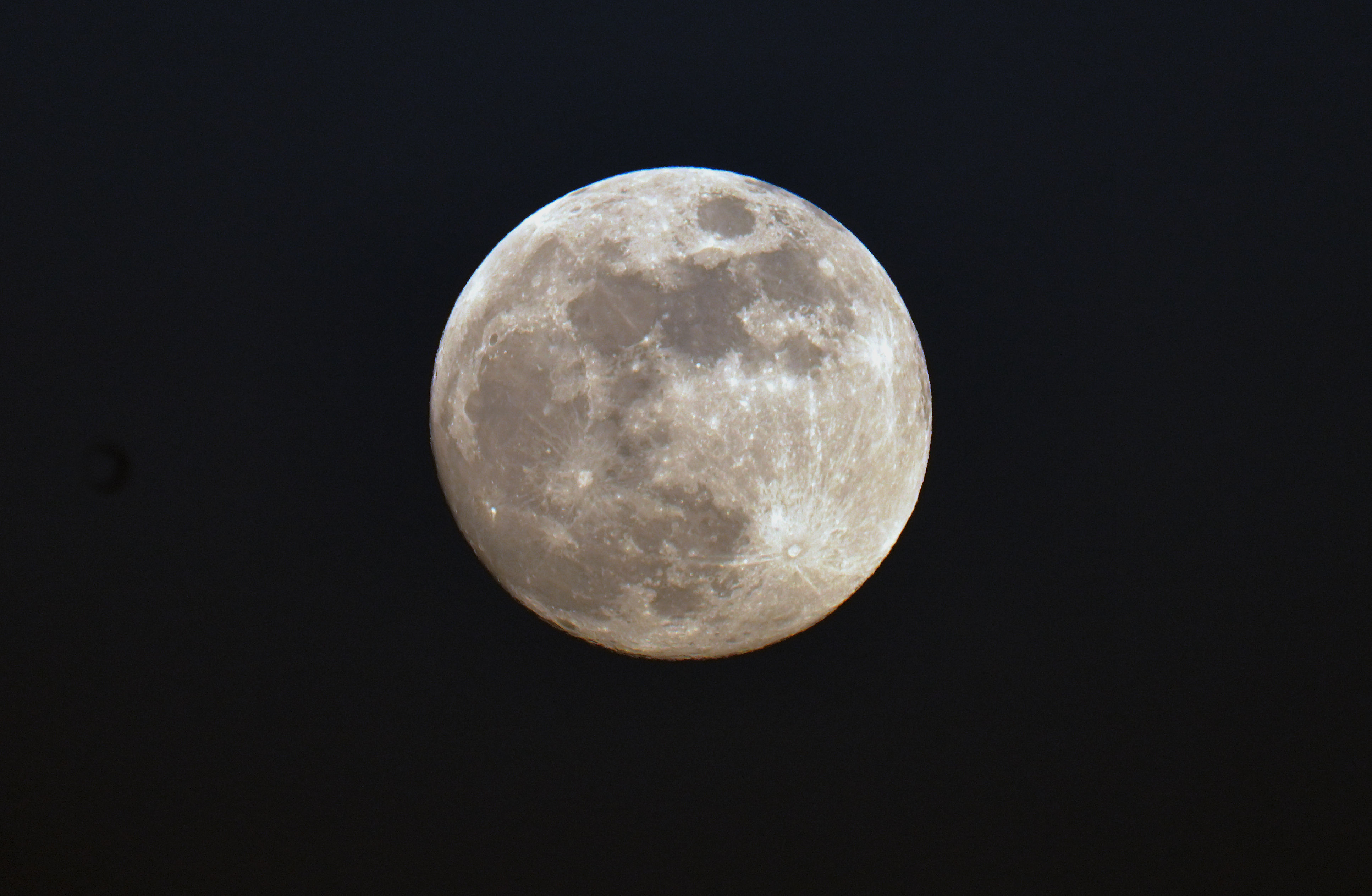 | Jim Sarsgard captured this image of the 13 day 23 hour old Moon on the 20th July 2024. He used a Canon 1000D camera through a Skywatcher Star Travel 102 mm refractor on an alt-az mount. The exposure was 1/25th second at ISO 200. Jim quotes that it "...was a beautiful honey coloured Moon, not quite full, low in the southeast." Image Credit: Jim Sarsgard. |
