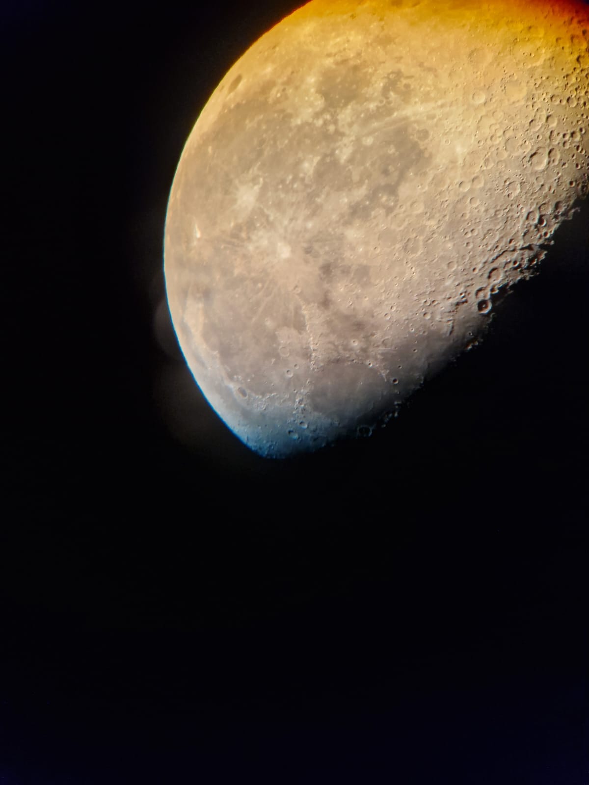 This image of a waning gibbous Moon was captured by Colin Blockwell through the Society's 10-inch Meade SCT using eyepiece projection and a smartphone, during the observing session on the 11th October 2025. Image Credit: Colin Blockwell.