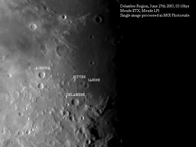 The following pictures of the 20 day old Moon were taken by Chris Newsome in the early hours of the 27th June 2005. Image Credit: Chris Newsome. |