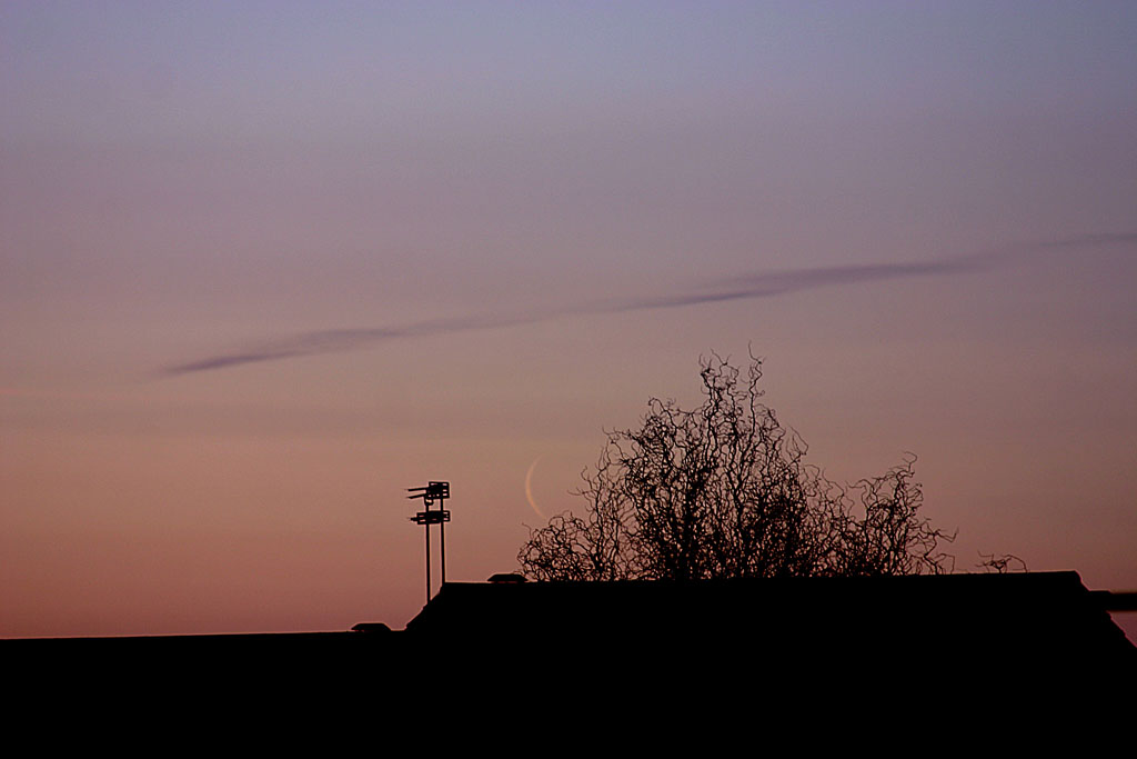 The following pictures of the rising 27 day old Moon were taken by Chris Newsome on the 5th March 2008. The first was taken at 06:28 and the second at 06:40 am. They were both taken with a Canon EOS 300D camera using a 200 mm lens at f/5.6. Exposure times were 1/10th and 1/160th second for the 06:28 and 06:40 pictures respectively. Image Credit: Chris Newsome. |