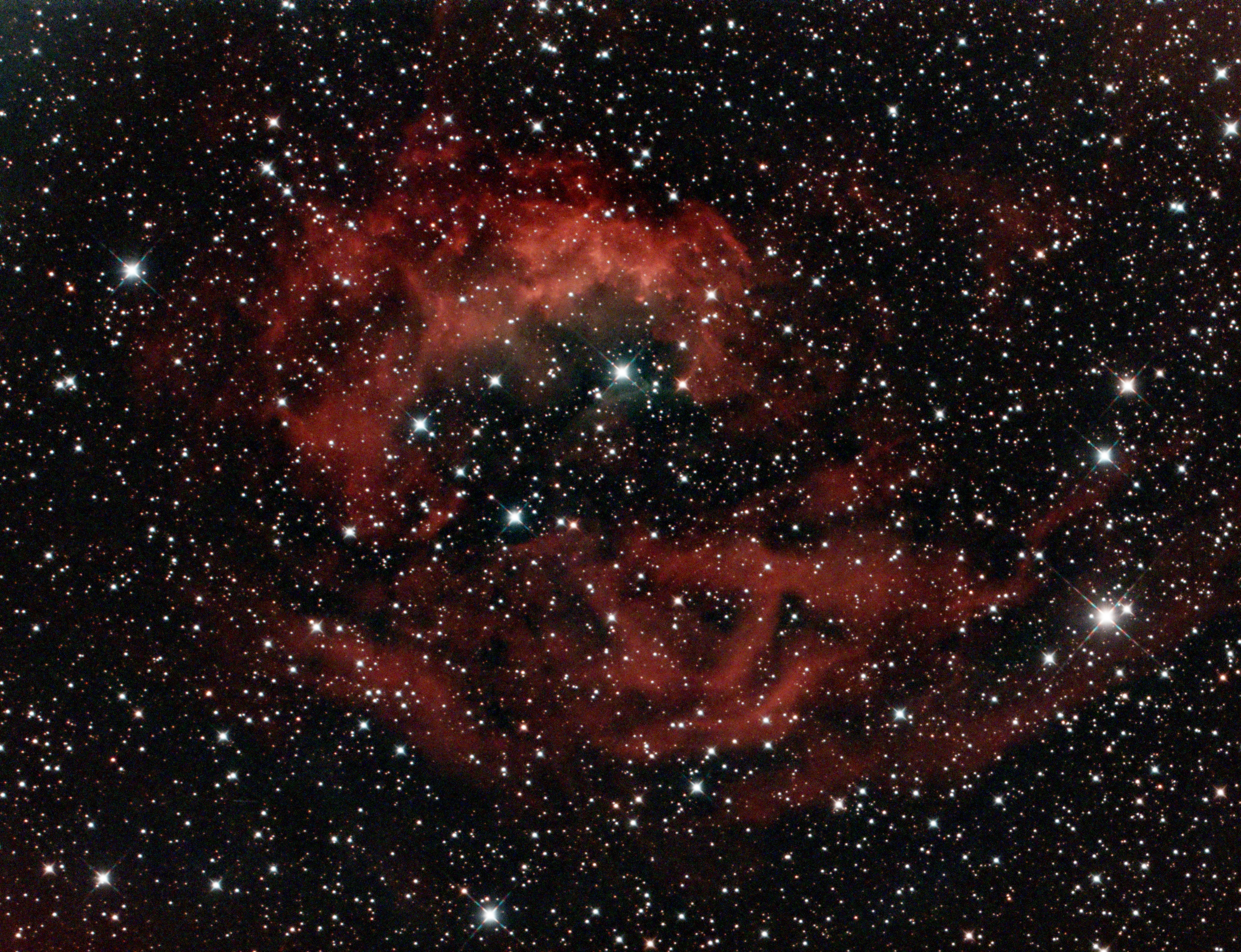 Mike Lancaster took the following image of Lower's Nebula in the northeast of Orion on the 3rd March 2024. The image comprises 33 x 4 minute exposures taken using an Altair Hypercam 26C at 300 gain (plus darks, flats and flat darks), through an Orion Optics UK AG12 Astrograph mounted on an EQ8 mount. A 0.95x Wynne Corrector and Astronomik CLS-CCD filter were also employed. This setup was guided in PHD2 using an SXV Lodestar camera attached to a piggybacked ST-80. Images were acquired using SharpCap, and the processing was entirely performed in PixInsight. Image Credit: Mike Lancaster. |