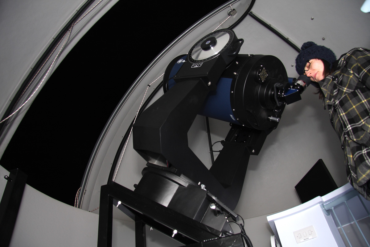 ![]() Hayley Flood at the eyepiece of the 16" Meade LX200 in the Malcolm Parry Observatory. |