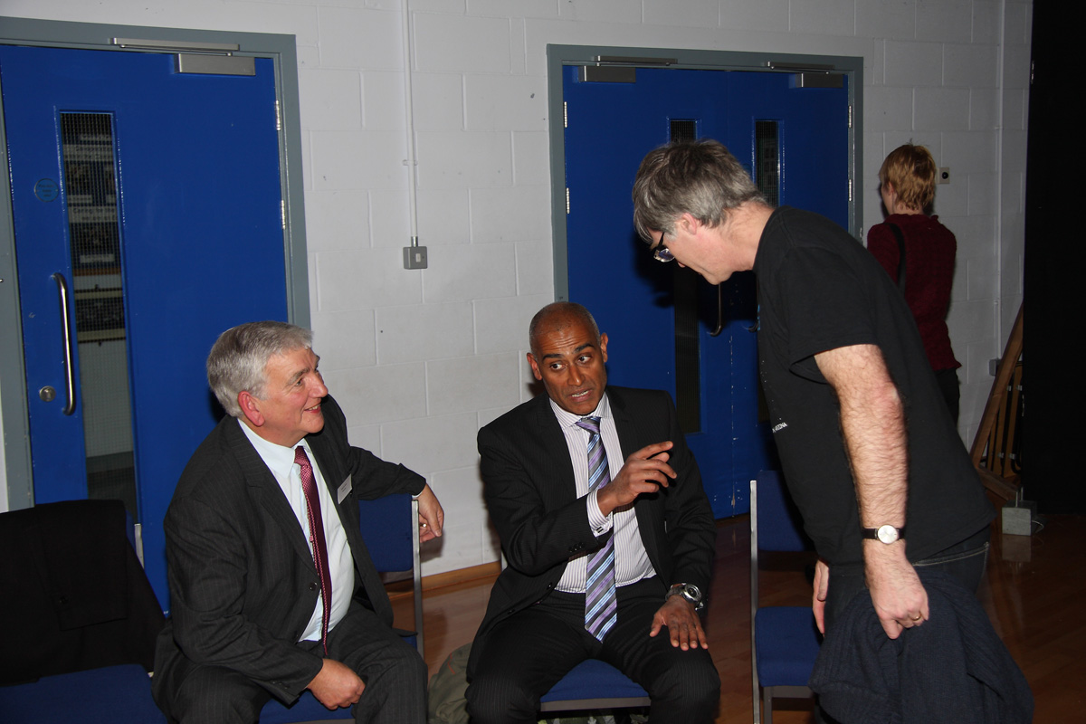 ![]() Graham Ensor in deep discussion with Malcolm Parry and and Anu Ohja (Space Academy Director for The National Space Centre) who formally opened the observatory. |
