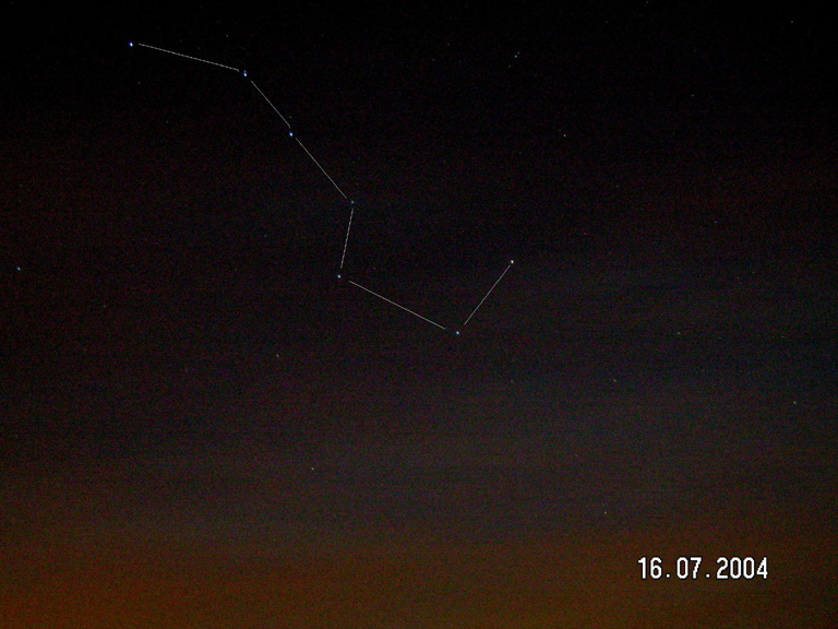 | Chris Newsome captured this view of the winter sky including Ursa Major (in the midle of the picture) on the 29th December 2014 from the A515 at Biggin, Derbyshire. Jupiter is also visible on the right hand side of the image. The FOV diagonally across the frame is about 180deg. Taken with a Canon 40D, 8mm full frame fisheye lens, 4x30secs at ISO1600 (plus darks), stacked in DSS, processed in CS6. The slight Akira Fujii effect was created using IRIS software. You may have to scroll to see the whole picture! |