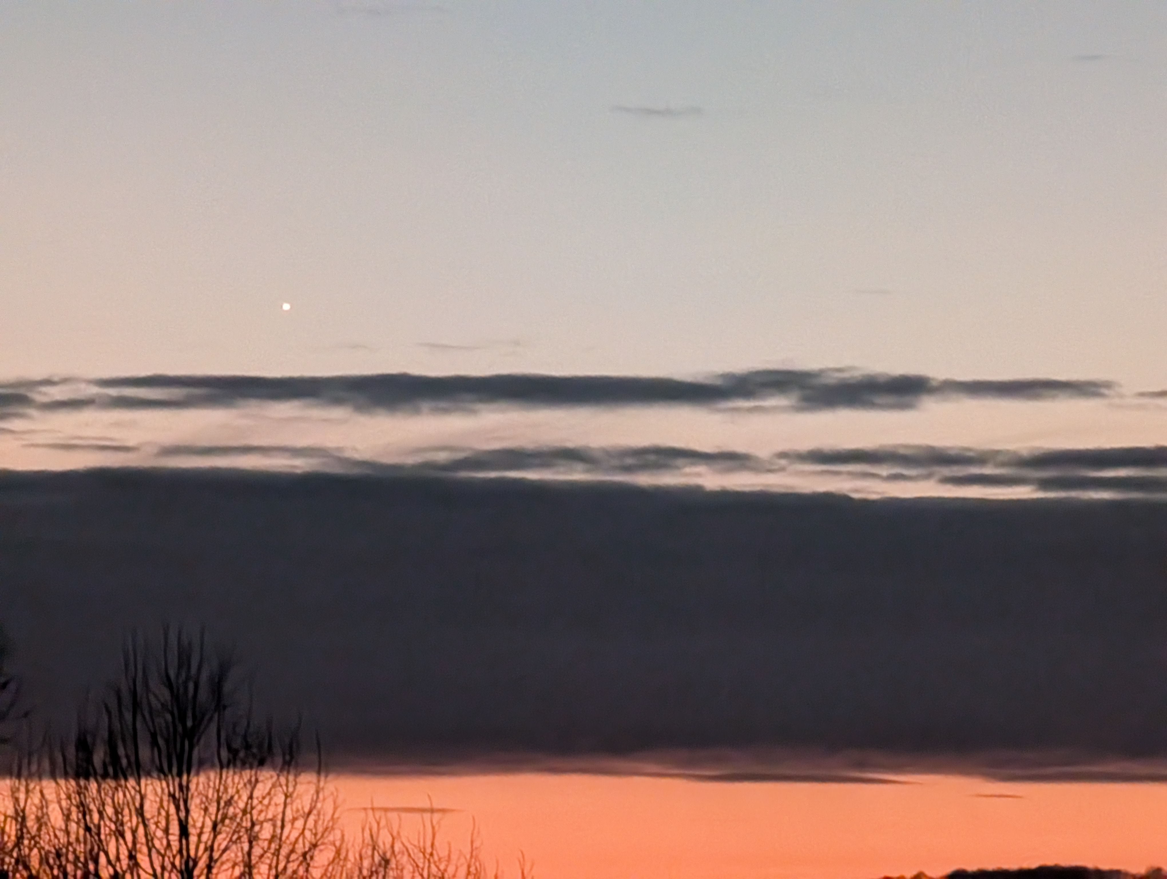Mike Lancaster took this picture of Venus setting low in the western sky on the evening of the 28th February 2026 at 18:23 UT. It was taken using a Google Pixel 8 Pro phone through an upstairs window. Image Credit: Mike Lancaster. |